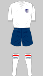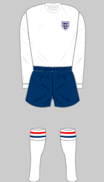 The red and white change kit was used several times, most famously, of course, in the 4-2 1966 World Cup Final triumph against West Germany. Two variants appeared - red shorts were worn in an away game against Belgium (25 Feb 1970) and white shorts and socks were used against Rumania (6 Nov 1968) and Bulgaria (1 June 1974).