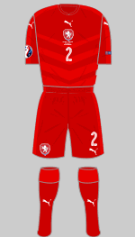 The Czech's first strip is based on the latest Puma design but subtly combines two shades of deep red and a striking chevron motif on the front of the shirt. Second choice is white trimmed in blue with red details.