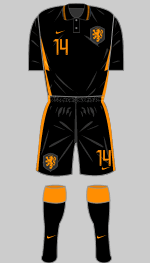 Nike's Park Derby III template makes another appearance but with a novel twist on the orange first kit. The elaborate graphic on the body represents a lion's head (the lion has been the national emblem since 1907). This continues onto the reverse where it takes the form of the back of the lion's mane. Nike seem inordinately pleased with themselves for creating this 360˚ graphic.